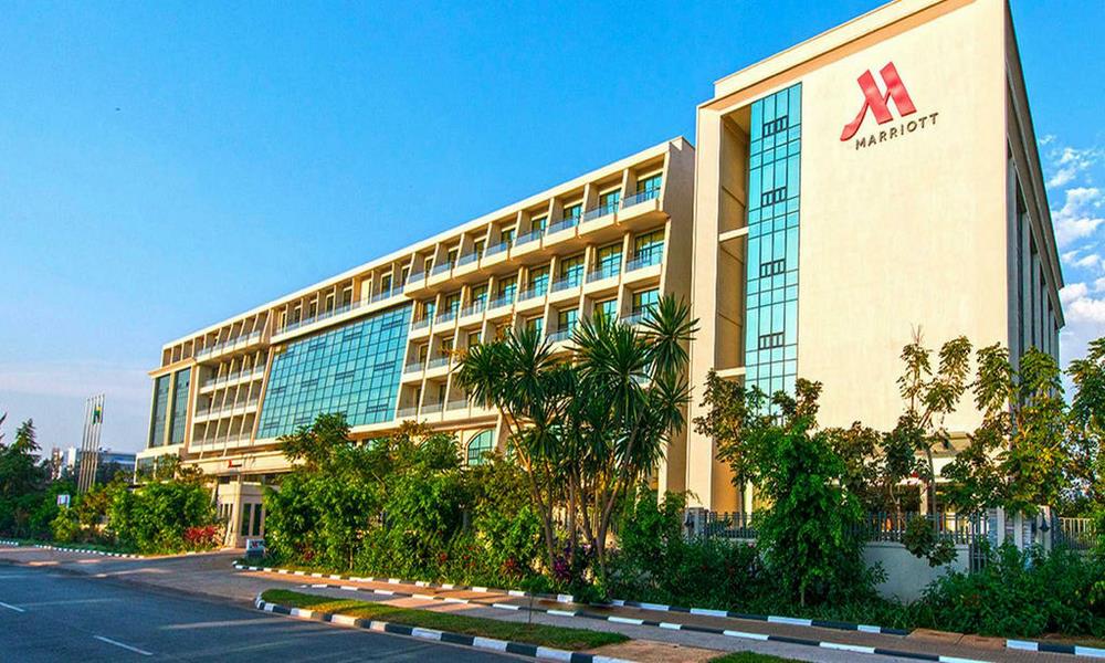 Experience the highest standard of comfort and convenience at Kigali Marriott Hotel. This premier luxury business hotel in Kigali is located along KN3 Avenue in downtown Kigali, close to the financial district, embassies, government ministries and Kigali City Hall. Timeless elegance surrounds you on arrival to our modern and spacious lobby and grand stairs. Experience spacious guest rooms decorated in warm pastel colors and fitted with the latest in technology. Visit Cucina Restaurant for tasty, innovative Italian fare and Lobby Bar for cocktails and city vistas. Complete your stay with a day of pampering at Saray Spa, the largest spa in the city, with its 5-star treatments and outdoor pool. Featuring the largest meeting space in the city, our hotel in Kigali is ideal for hosting productive conventions, elegant weddings and retreats of all sizes. Whether here for business or leisure, our Kigali luxury hotel offers all the amenities you'll need for an unforgettable retreat in Kigali, Rwanda.